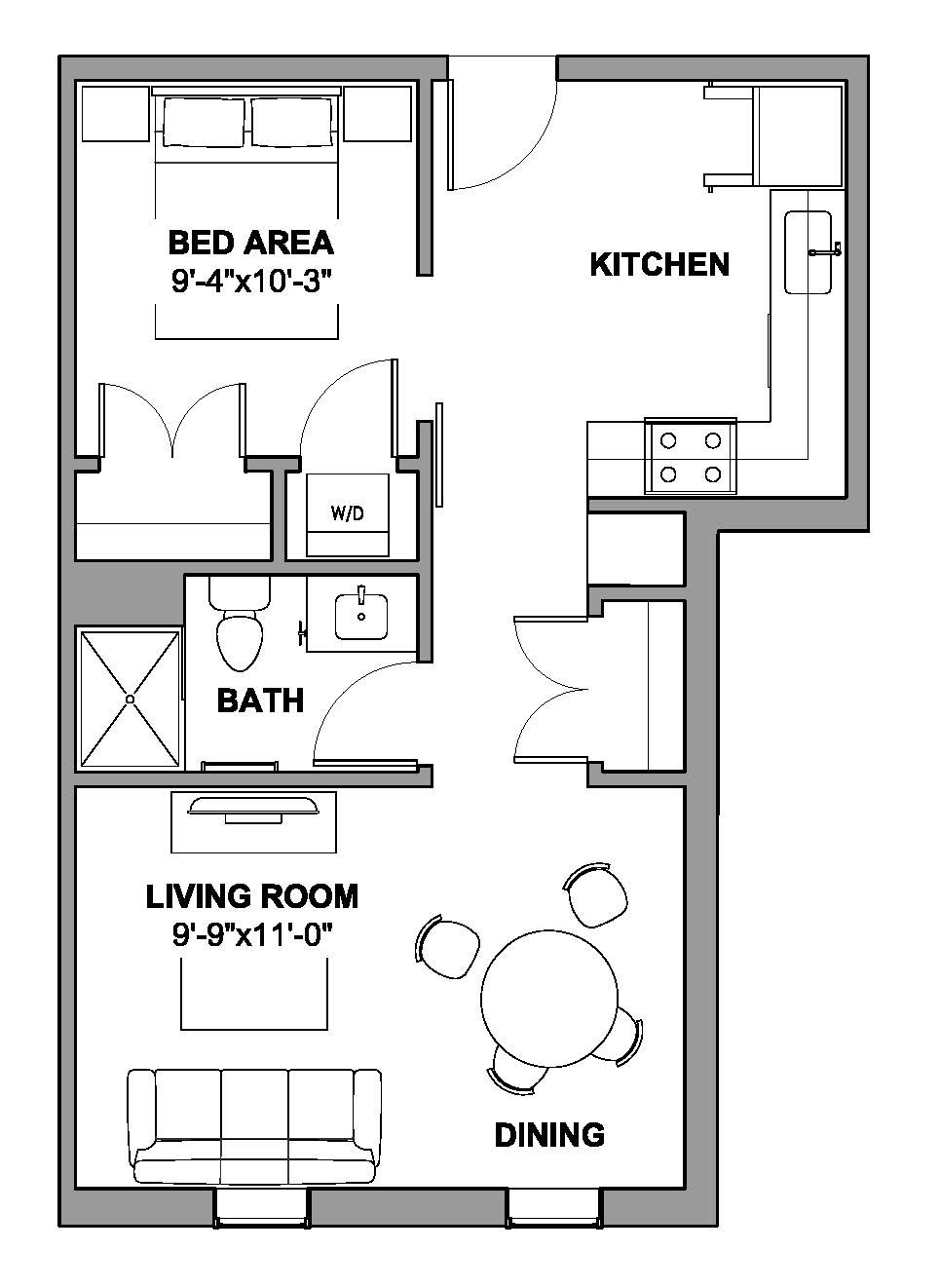 This studio has a designated bed area with privacy you don’t always get with your typical studio.